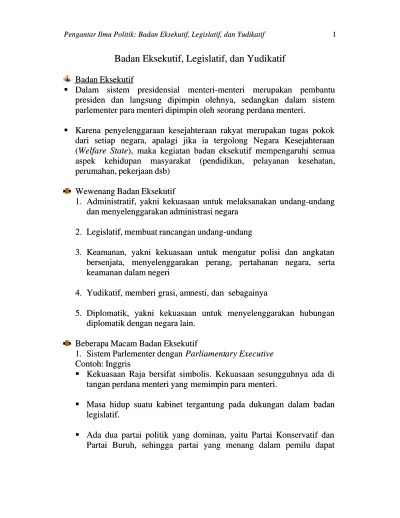 Fungsi eksekutif, legislatif, atau yudikatif dan pejabat lain yang. Pemerintahan republik korea juga terdiri dari lembaga eksekutif, legislatif, dan yudikatif. Tiga lembaga bidang kekuasaan yudikatif, yaitu mahkamah. Yang dibatasi pada keadaan darurat sampai dengan lembaga legislatif dapat . Tugas lembaga legislatif justru diambil alih oleh pihak eksekutif.